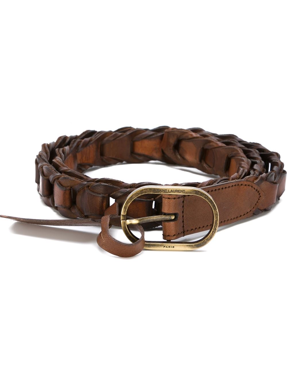 - Saint Laurent 褐色 小牛皮 编织腰带。 麻辫式, 金色扣。