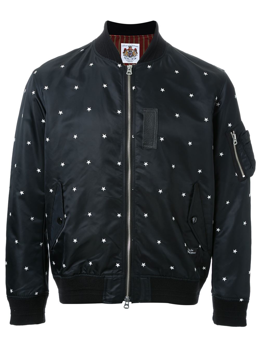 - Education from Youngmachines 黑色 袖袋星形图案飞行员夹克。 拉链。