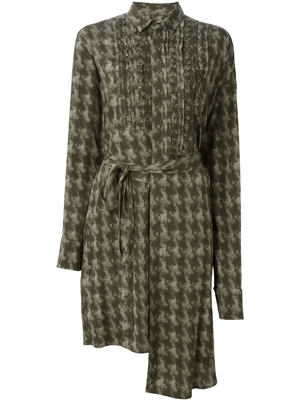 - A.F.Vandevorst 军绿色 丝绸混纺 'Dashboard'连衣裙。