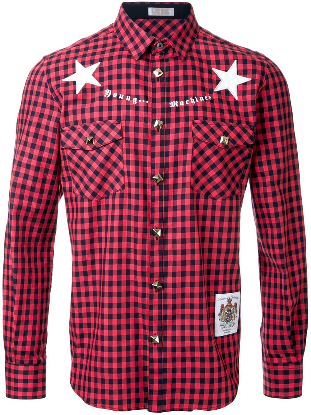 - Education from Youngmachines 红色 全棉 'stars'印花方格半身裙。