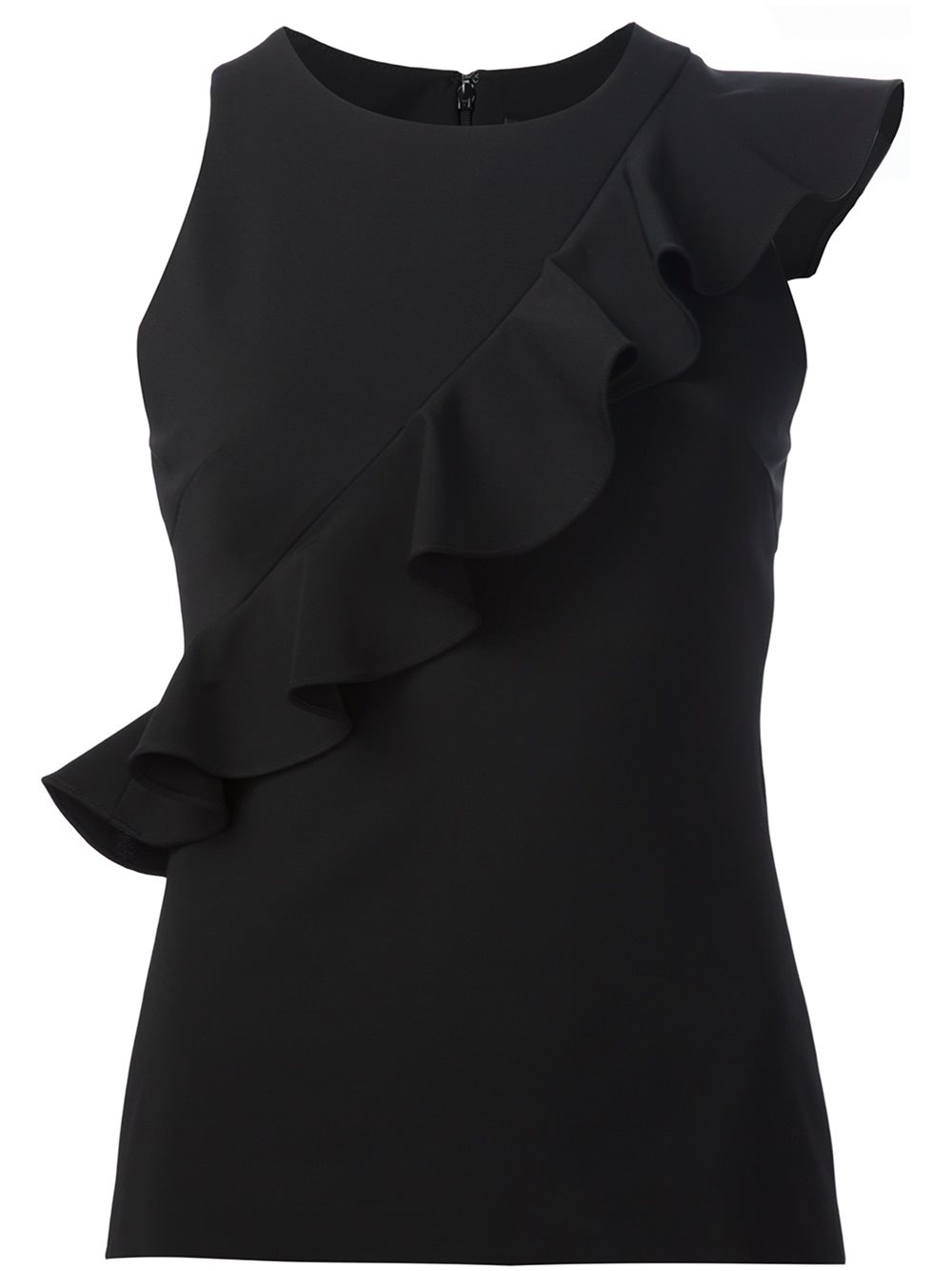 - Cushnie Et Ochs 黑色 丝绸混纺 荷叶坦克背心。