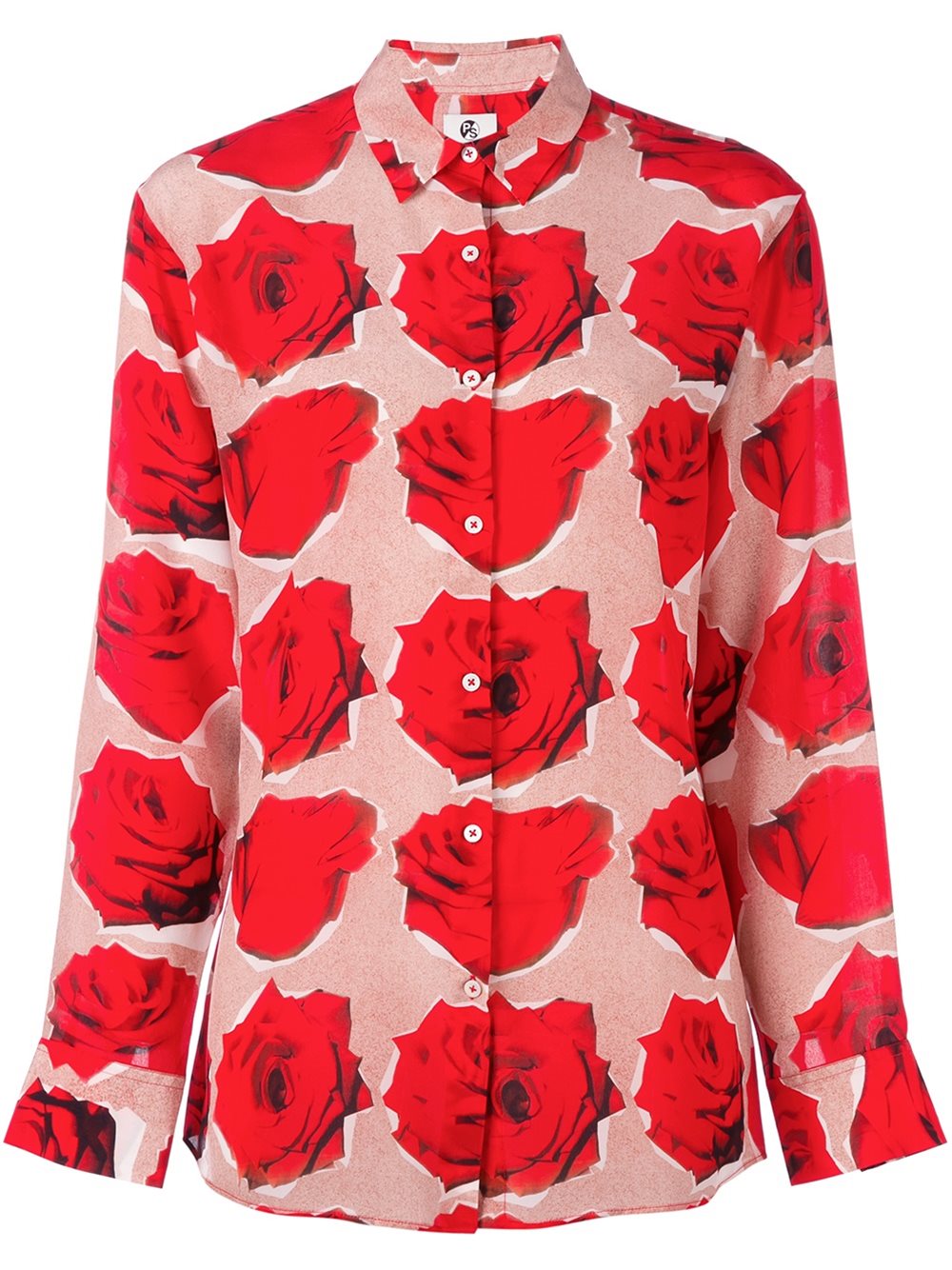 - PS Paul Smith 红色 丝绸 'Rose'印花长袖衬衫。
