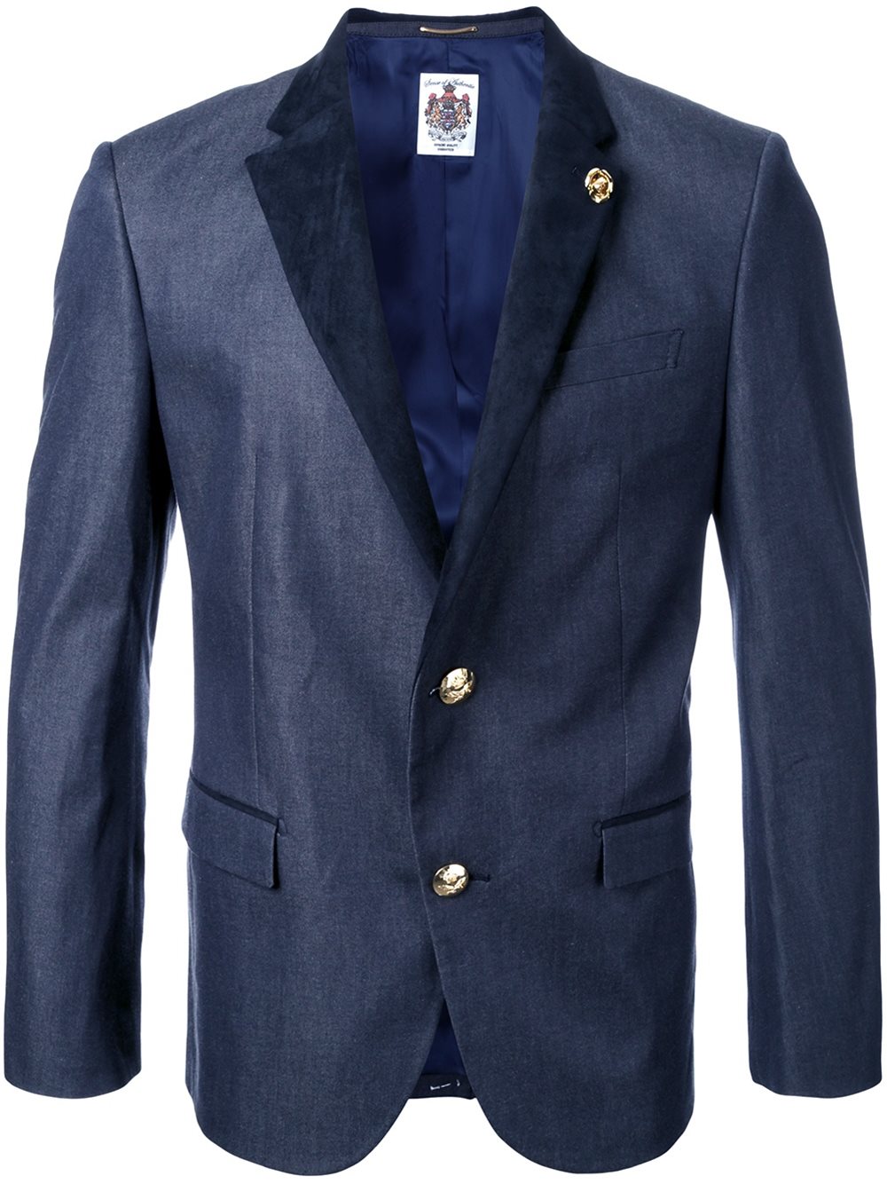 - Education from Youngmachines 深蓝色 全棉 尖翻领西装夹克。