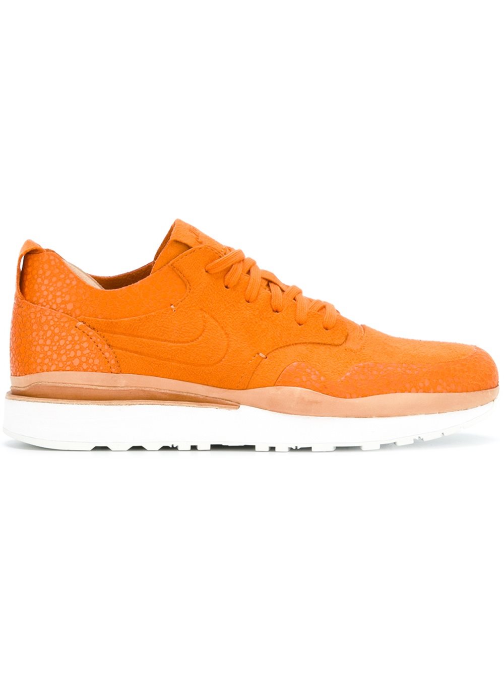 - Nike (耐克) 橙色 绒面皮 'Air Safari Royal'板鞋。 圆头, 正面绑带, 鞋舌饰有品牌浮雕, 护踝垫, 后置提鞋环, 经典耐克swoosh标识, 白色橡胶质鞋底。