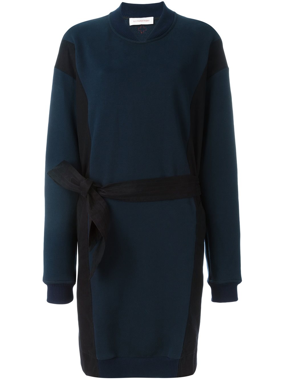 - A.F.Vandevorst 蓝色 棉质 束腰套头连衣裙。