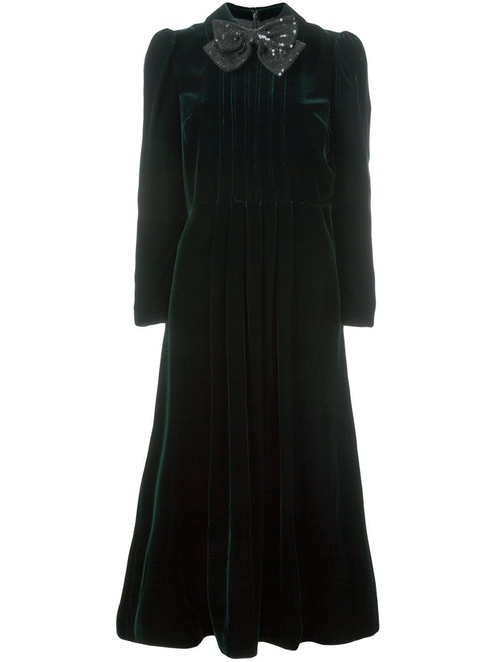 - Saint Laurent (圣罗兰) 黑色 丝绸 亮片领连衣裙。 经典衣领, 正面纽扣, 长袖, 伞状设计, 中长。