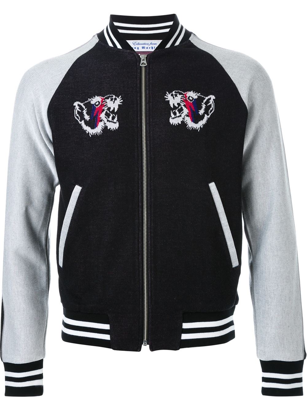 - Education from Youngmachines 黑色 丝绸混纺 拼接飞行员夹克。