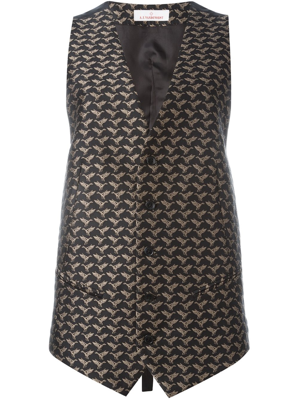 - A.F.Vandevorst 黑色 小鸟提花套头衫。