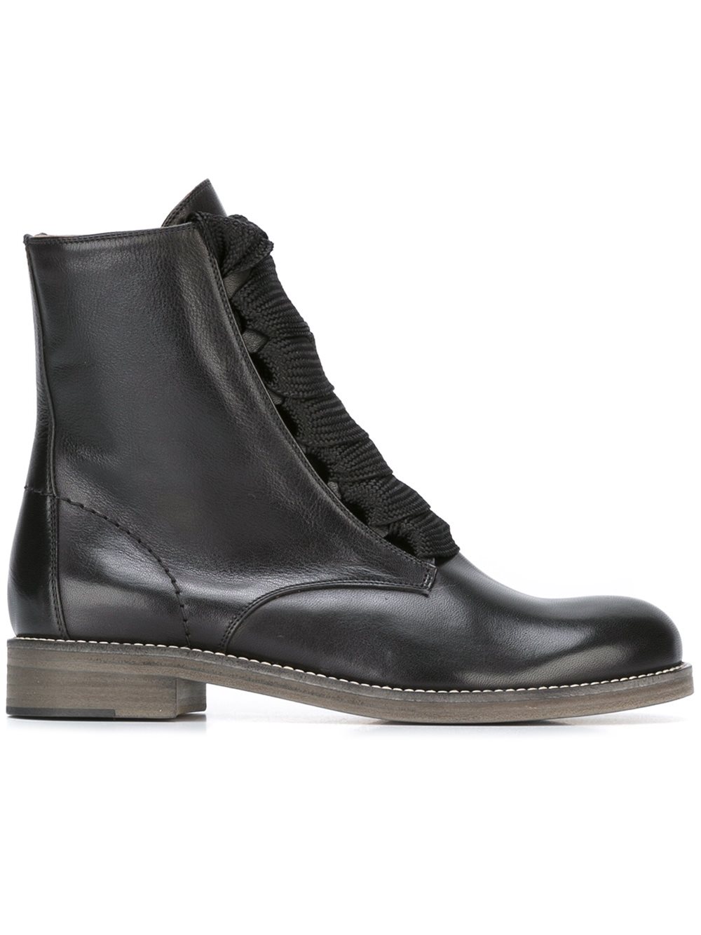 - Chloé (寇依) 黑色 牛皮 'Harper'及踝靴。 圆头, 正面绑带, 超大鞋舌, 侧置拉链, 针脚细节, 短粗跟。