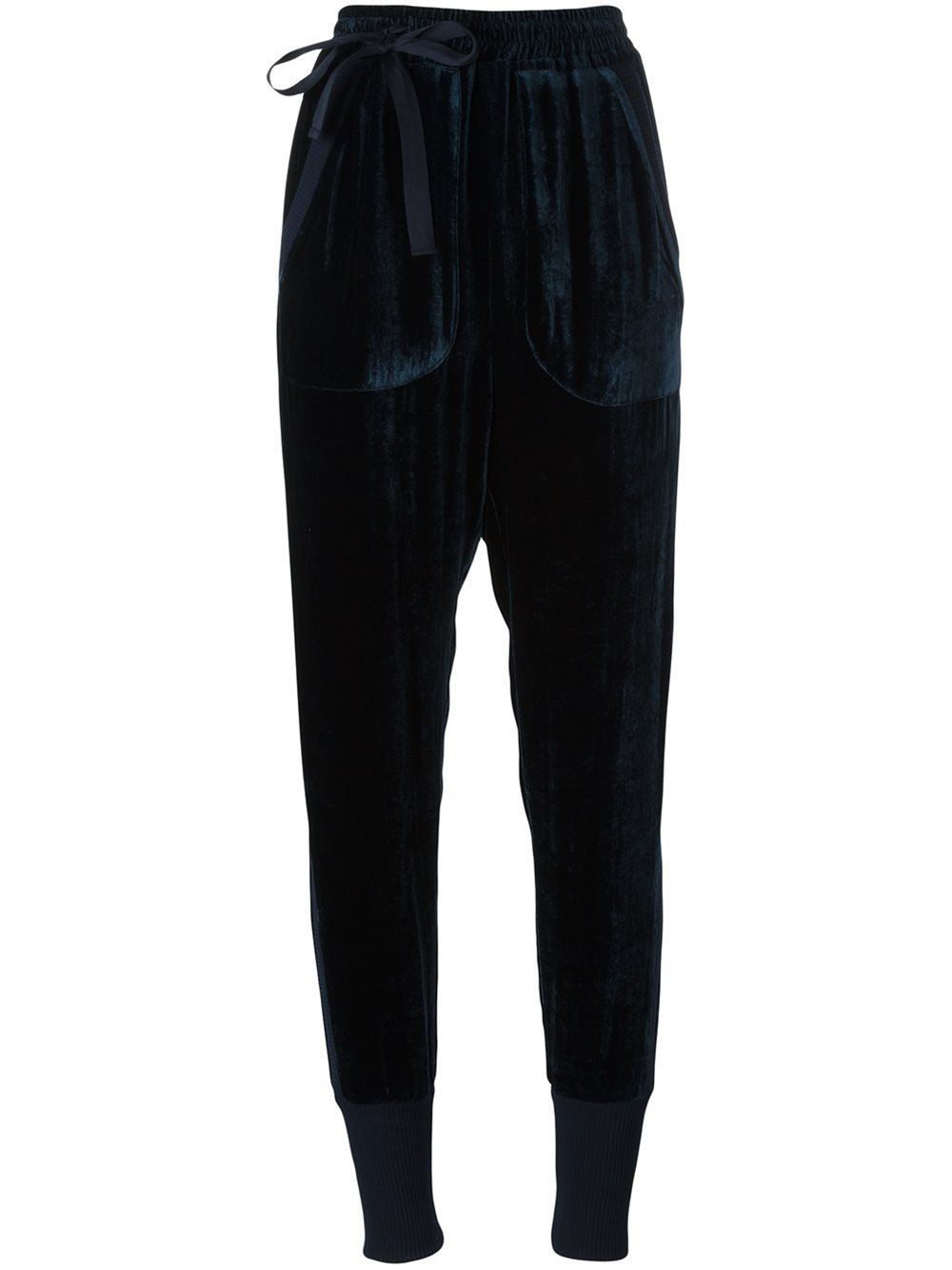 - A.F.Vandevorst 铁蓝色 棉质与丝绒 抽绳运动裤。