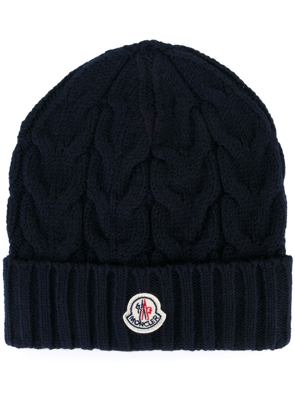 - MONCLER KIDS 蓝色 初剪羊毛混纺 粗针织套头帽。 帽檐上翻, 正面标贴。