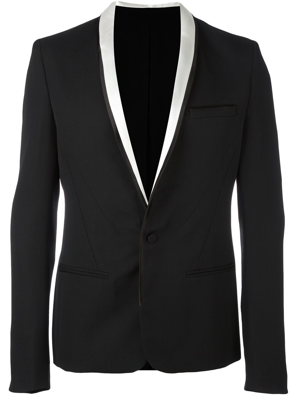 - Haider Ackermann 黑色 初剪羊毛 对比尖翻领西装夹克。