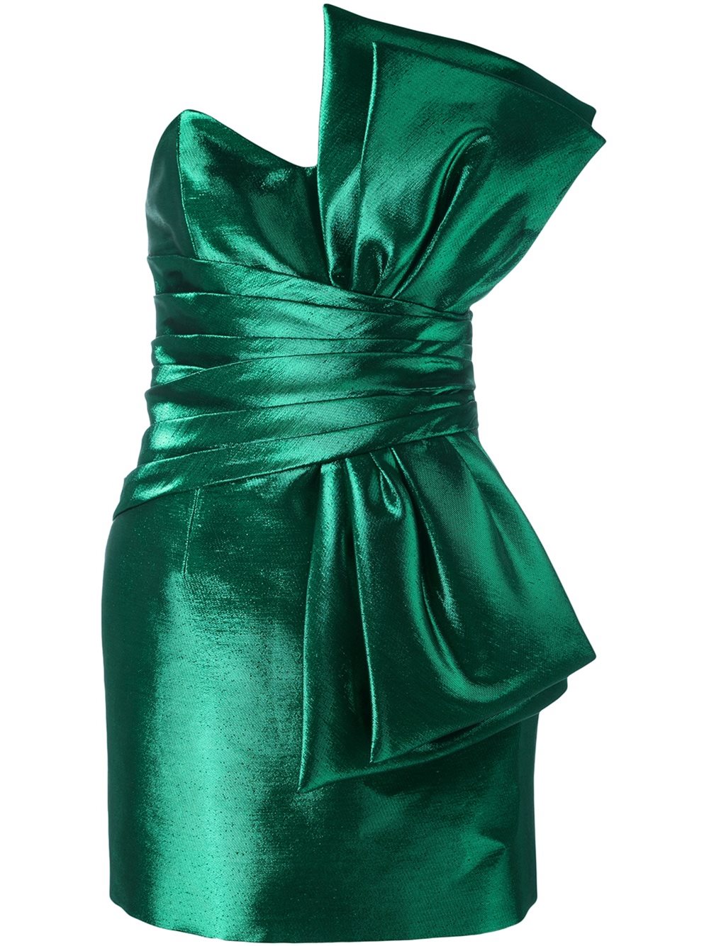 - Saint Laurent (圣罗兰) 绿色 丝绸与棉质混纺 露肩蝴蝶结迷你连衣裙。 心形领, 合身廓形。