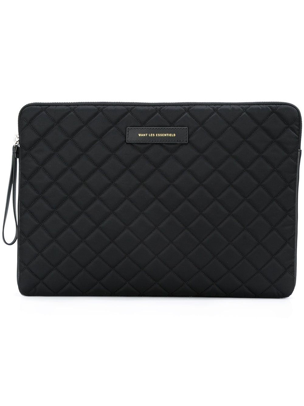 - Want Les Essentiels De La Vie 黑色 牛皮 珩缝电脑包。