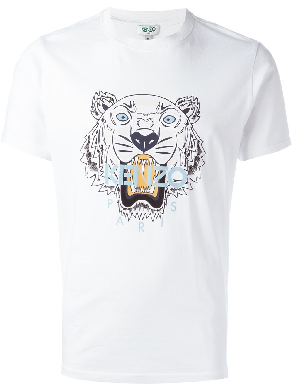 - Kenzo (高田贤三) 白色 全棉 'Tiger'T恤。 圆领, 短袖。