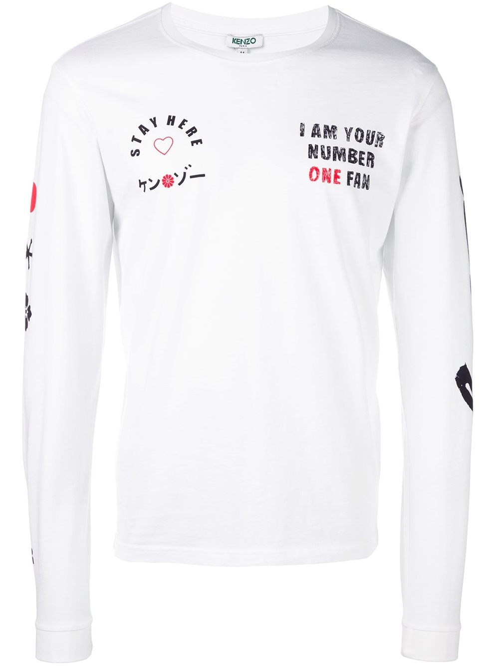 - White cotton 'Kenzo X Fan' T-shirt from Kenzo featuring a round neck and long sleeves.