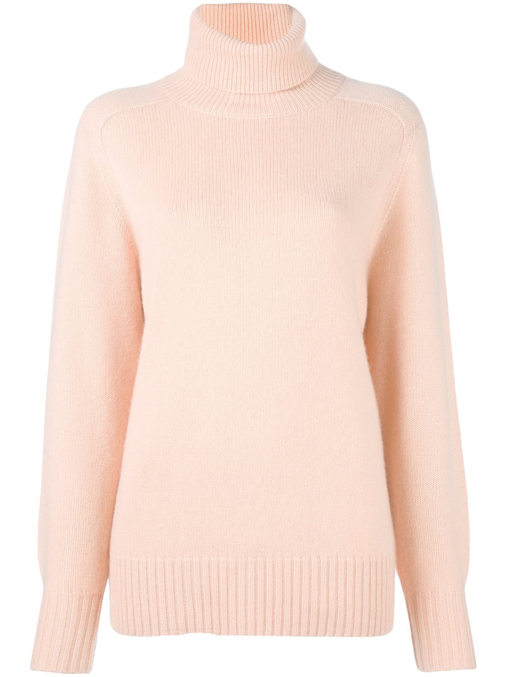 - Chloé (寇依) 裸色 羊绒 高领毛衣。 罗纹高领, 长袖, 罗纹底边及袖口。