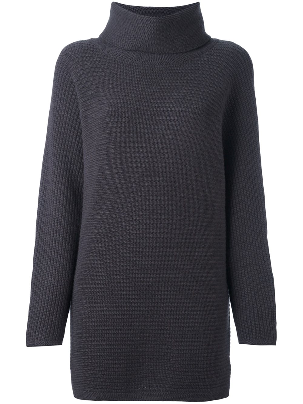 - N.Peal 灰色 羊绒 高领蝙蝠袖毛衣。