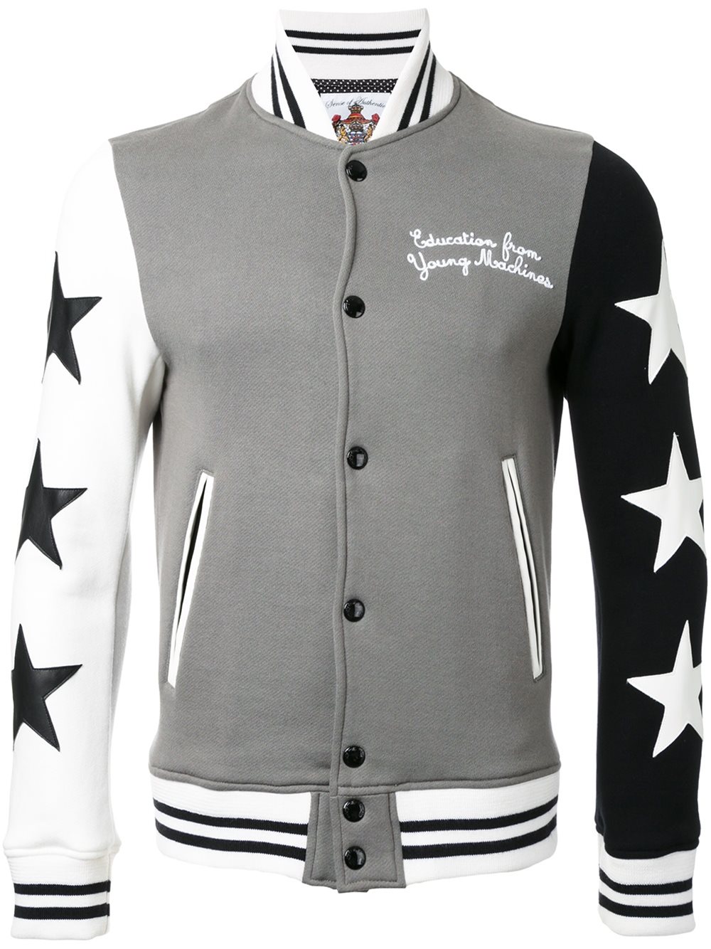 - Education from Youngmachines 灰色 全棉 星星印花飞行员夹克。