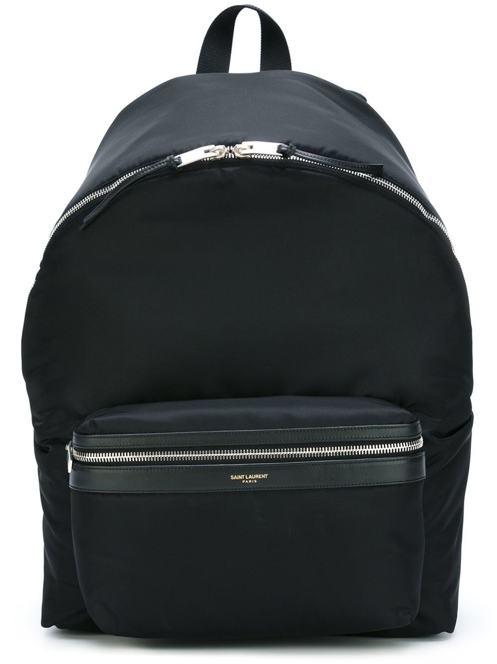 - Saint Laurent (圣罗兰) 黑色 'City'背包。 正面拉链口袋, 正中有品牌标记, 顶置拉链, 可调整肩带, 内置口袋, 内置拉链口袋, 内置标贴。