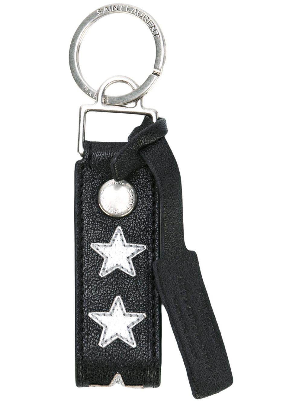 - Saint Laurent (圣罗兰) 黑色 小牛皮 'Rider California'钥匙环。 银色五金配件, 皮质吊牌, 正面饰有浮雕品牌标记。