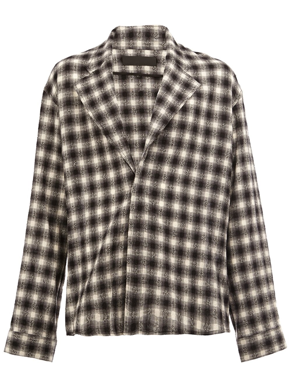 - Haider Ackermann 黑色 羊毛全棉混纺 格纹衬衫。 梯形翻领, 隐藏式正面开合, 长袖, 搭扣袖口。