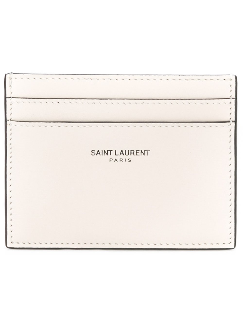 - Saint Laurent (圣罗兰) 米白色 牛皮 经典卡夹。 多个夹层, 正面标志贴。