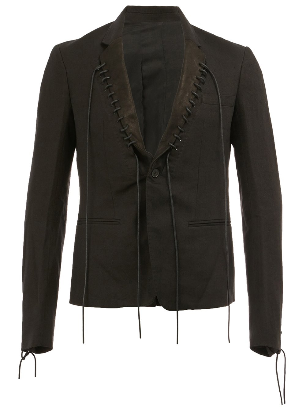 - Haider Ackermann 黑色 牛皮与亚麻马海毛混纺 单排扣西装夹克。
