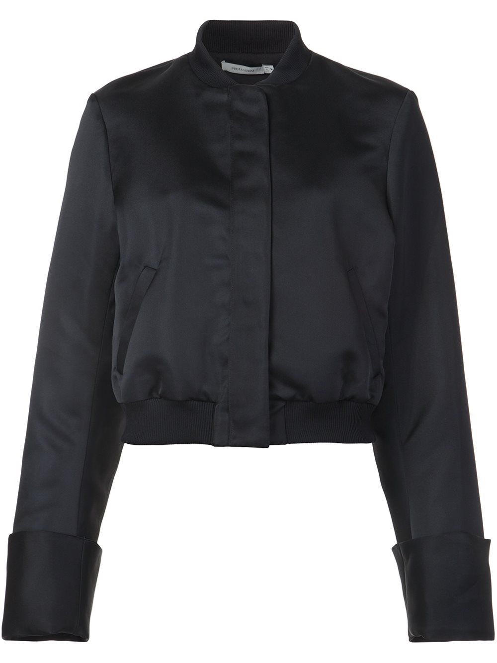 - Protagonist 黑色 衣袖上翻飞行员夹克。