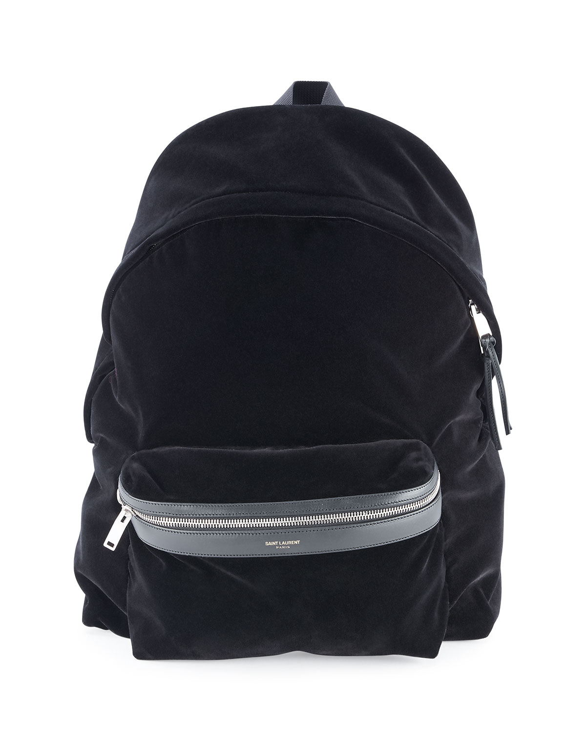 Saint Laurent Velvet Backpack w/ Leather Trim, Black