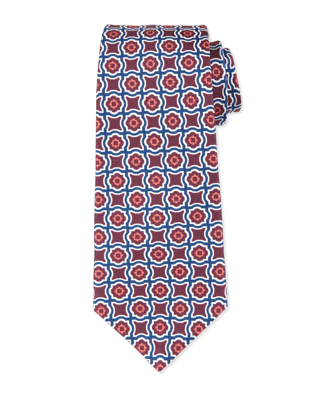 Fancy Medallion-Print Silk Tie, Burgundy/Navy