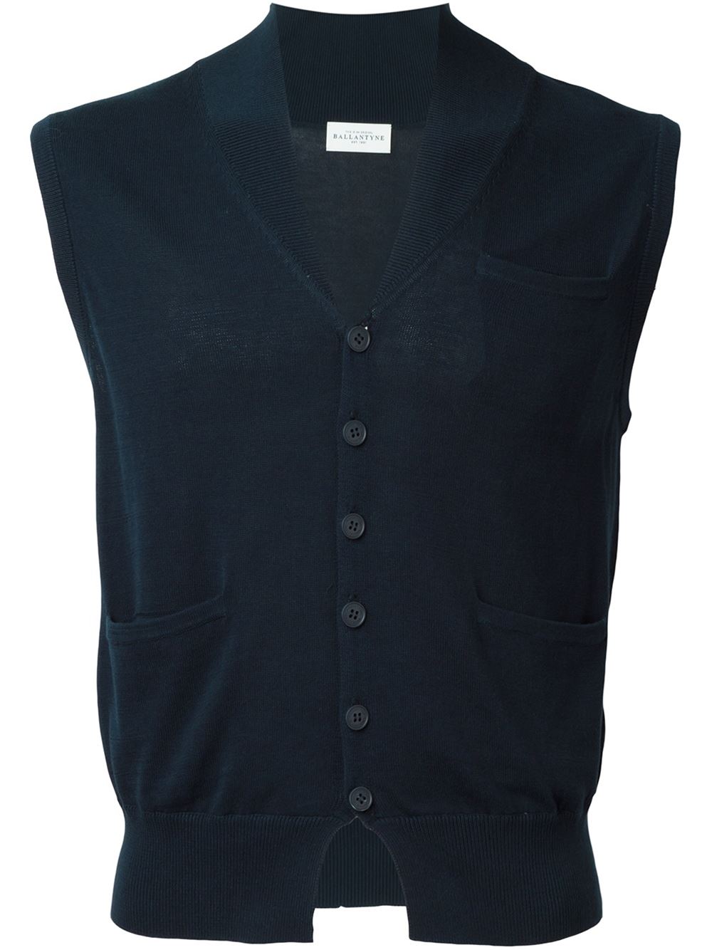 - Ballantyne 蓝色 全棉 六纽扣针织马甲。