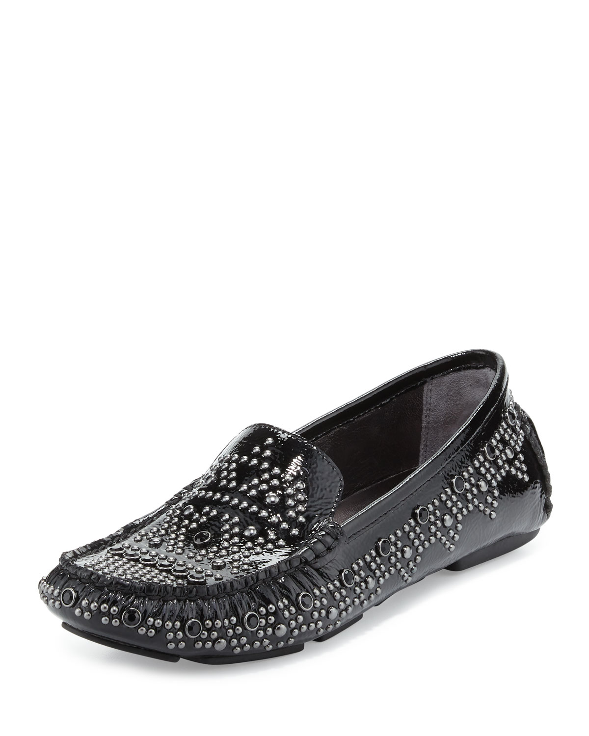 - Donald J Pliner studded, crinkled patent leather loafer.