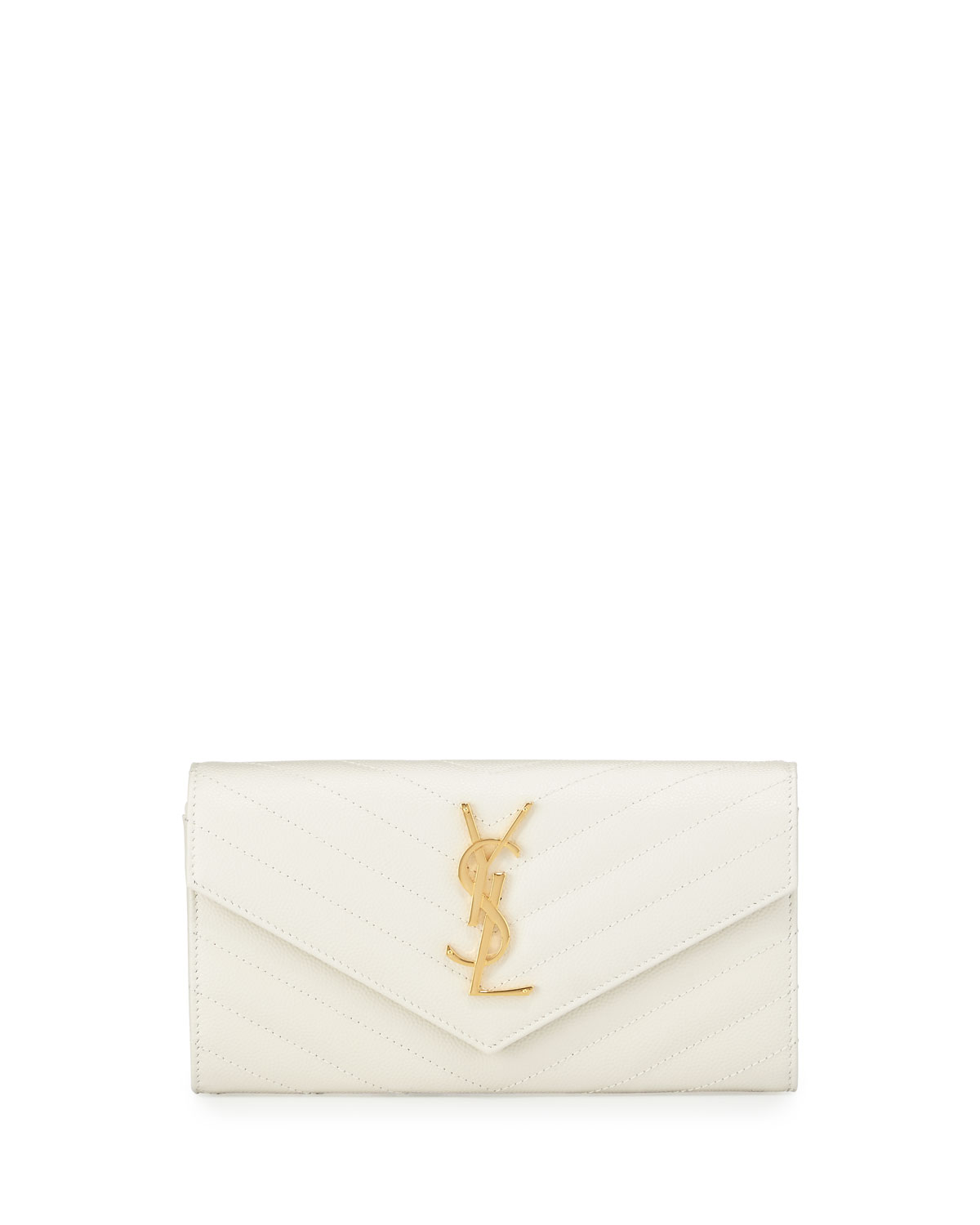 Saint Laurent Monogram Leather Large Flap Continental Wallet, White