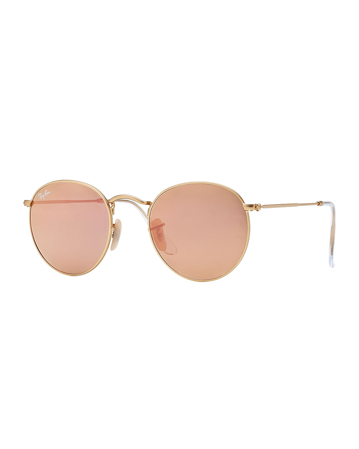 Ray-Ban Round Metal-Frame Sunglasses with Pink Lens