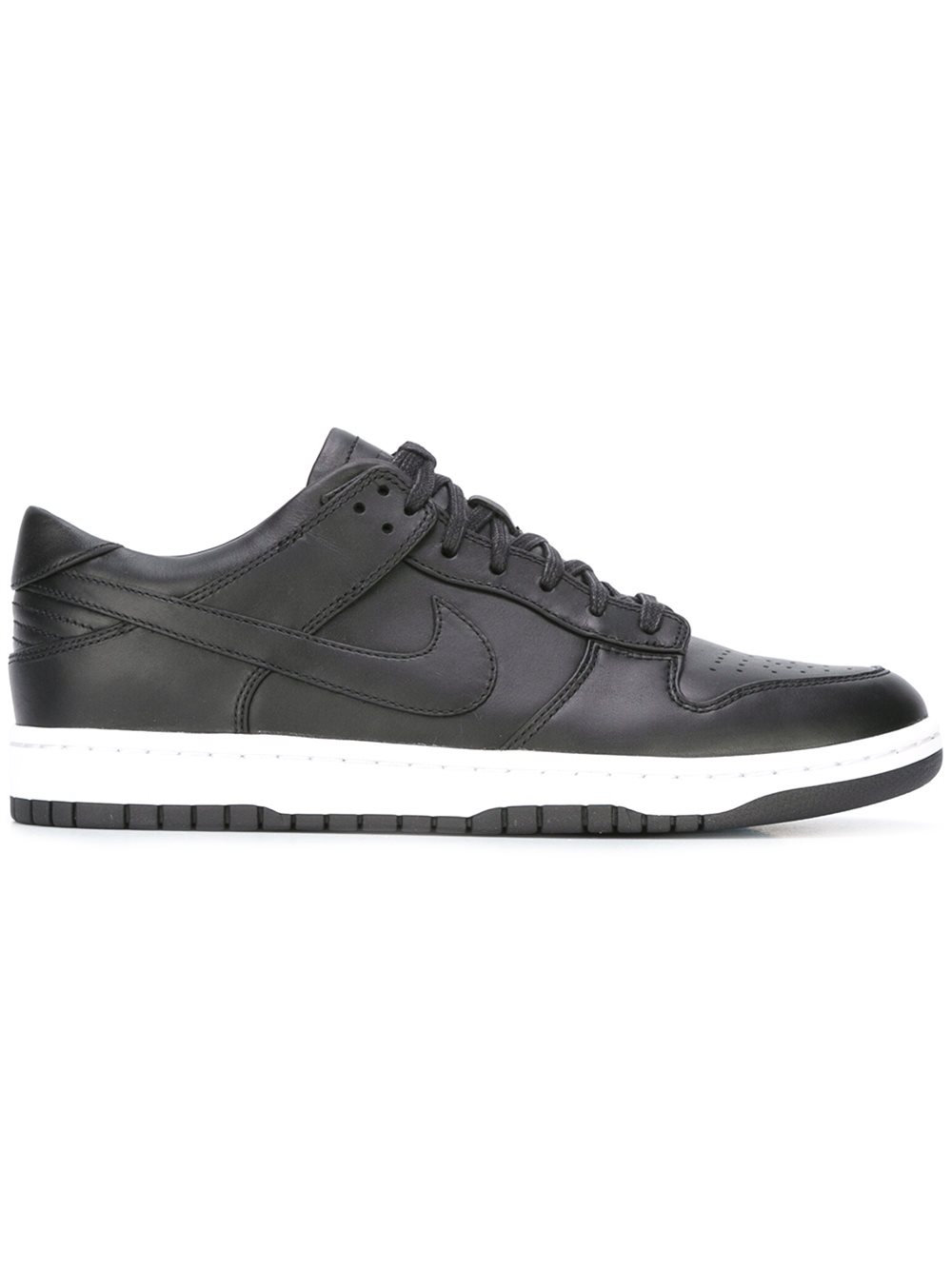 - Nike (耐克) 黑色 牛皮 'NikeLab Dunk Lux Low'板鞋。 圆头, 正面绑带, 鞋舌饰有品牌浮雕, 经典耐克swoosh标识, 白色橡胶质鞋底。