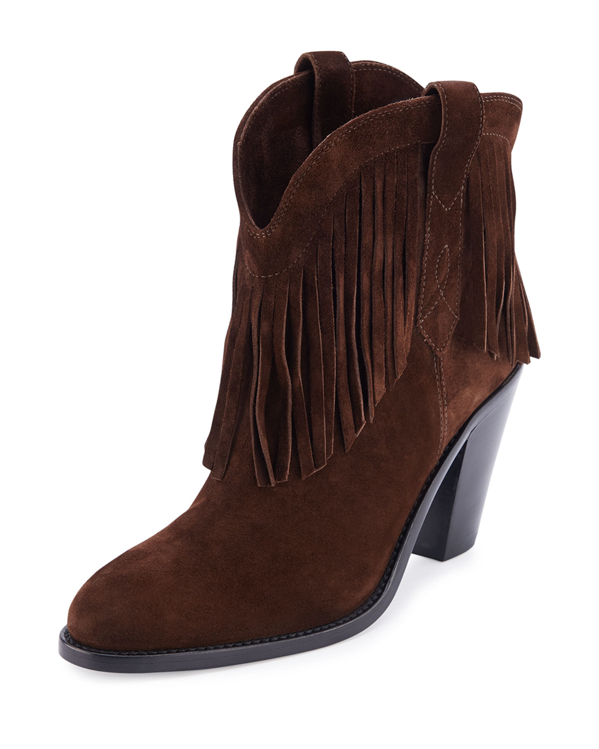 Saint Laurent Babies Fringe Suede 70mm Bootie, Coffy