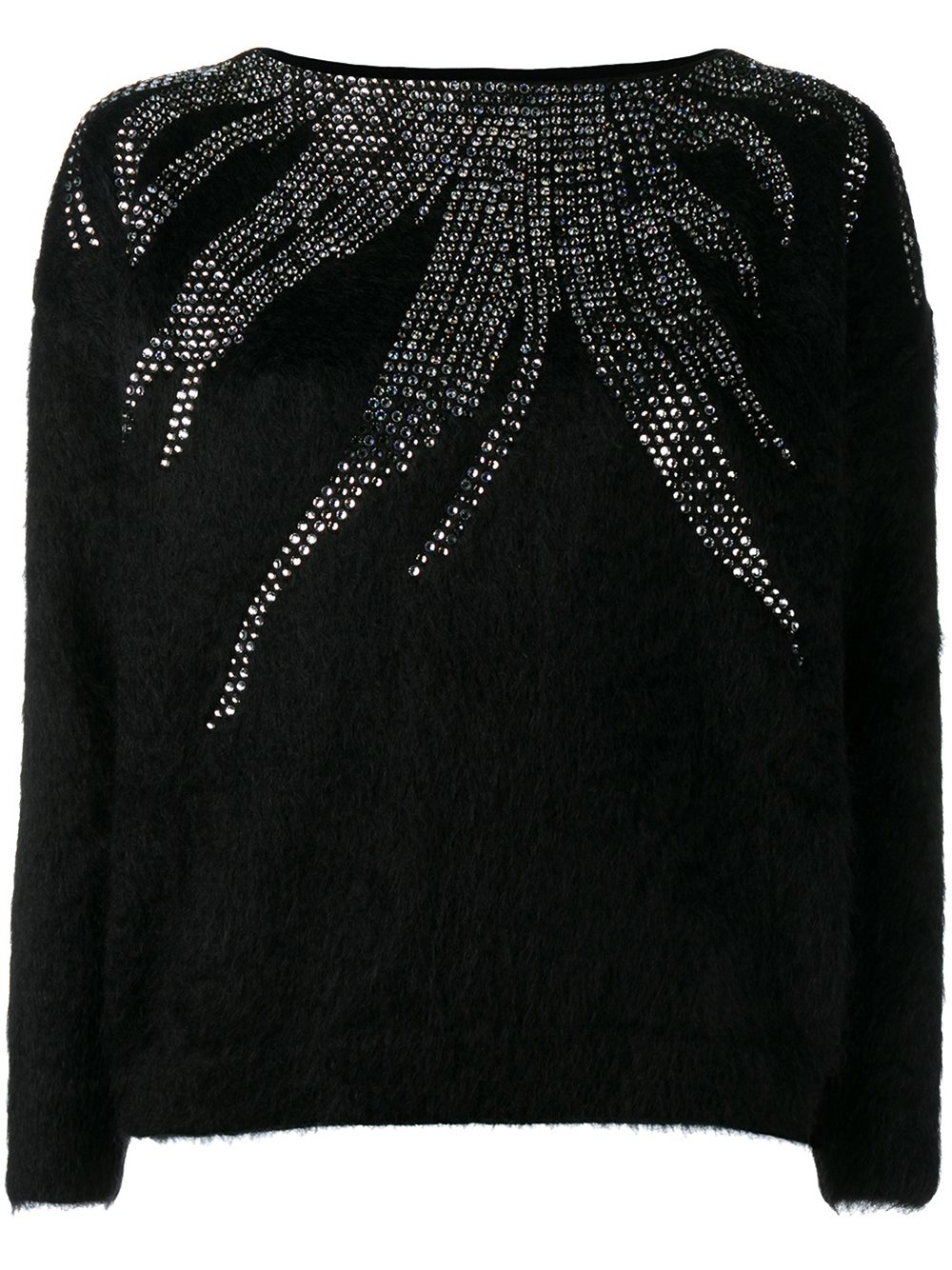 - Saint Laurent (圣罗兰) 黑色 马海毛羊毛混纺 水晶设计毛衣。 圆领, 长袖。