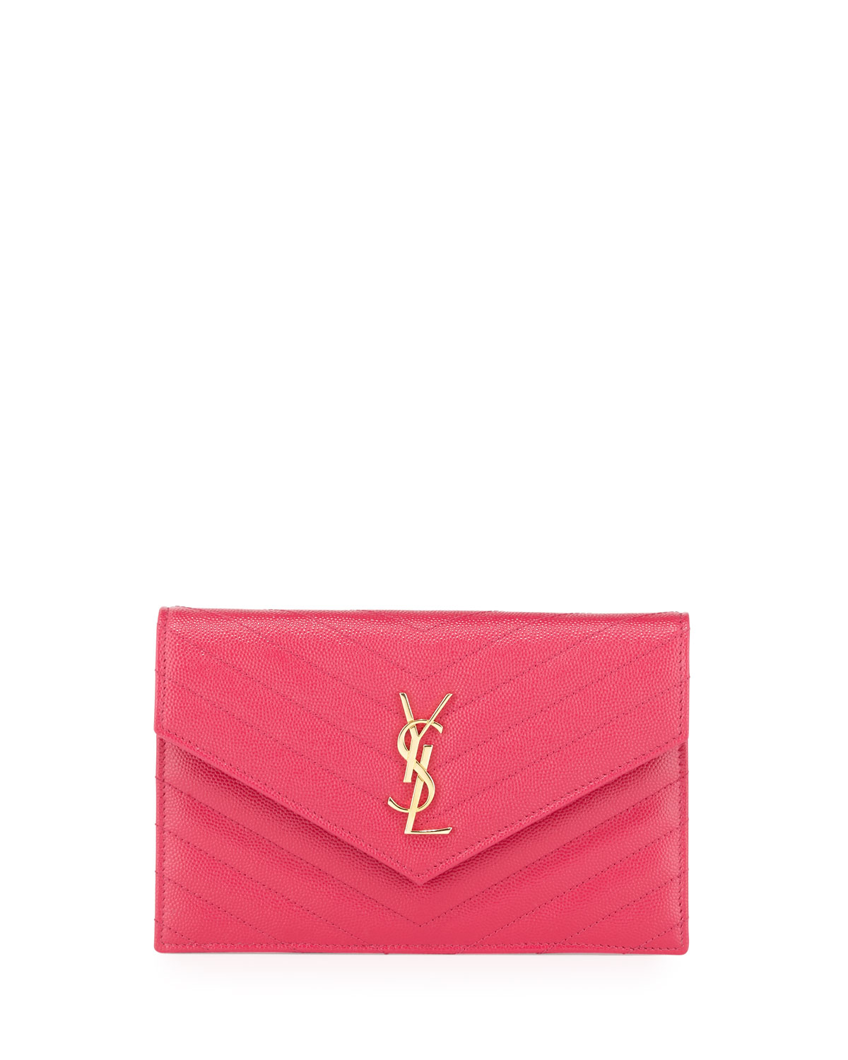 Saint Laurent Monogram Small Matelassé Envelope Chain Wallet, Lipstick Pink