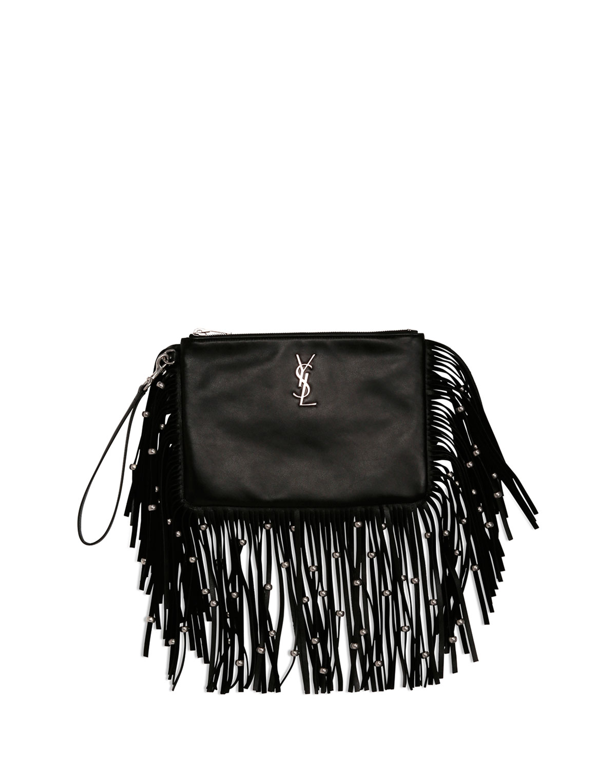 Saint Laurent Monogram Fringe Beaded Pouch, Black