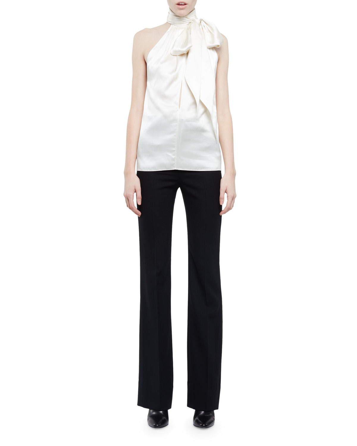 Saint Laurent Halter Tie-Neck Silk Blouse, Vanilla