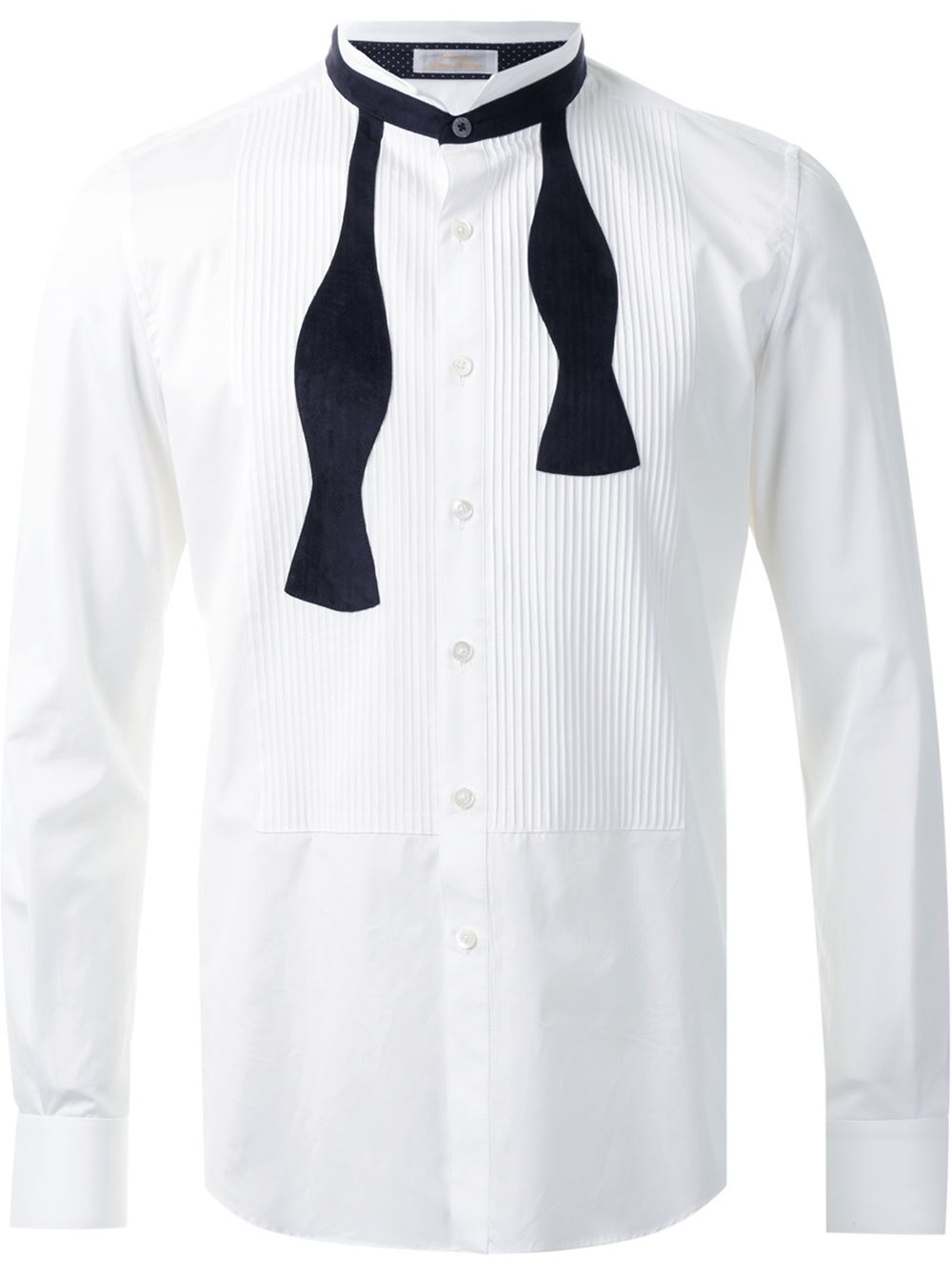 - Education from Youngmachines 白色 全棉 百褶拼接蝴蝶结缝饰纽扣衬衫。
