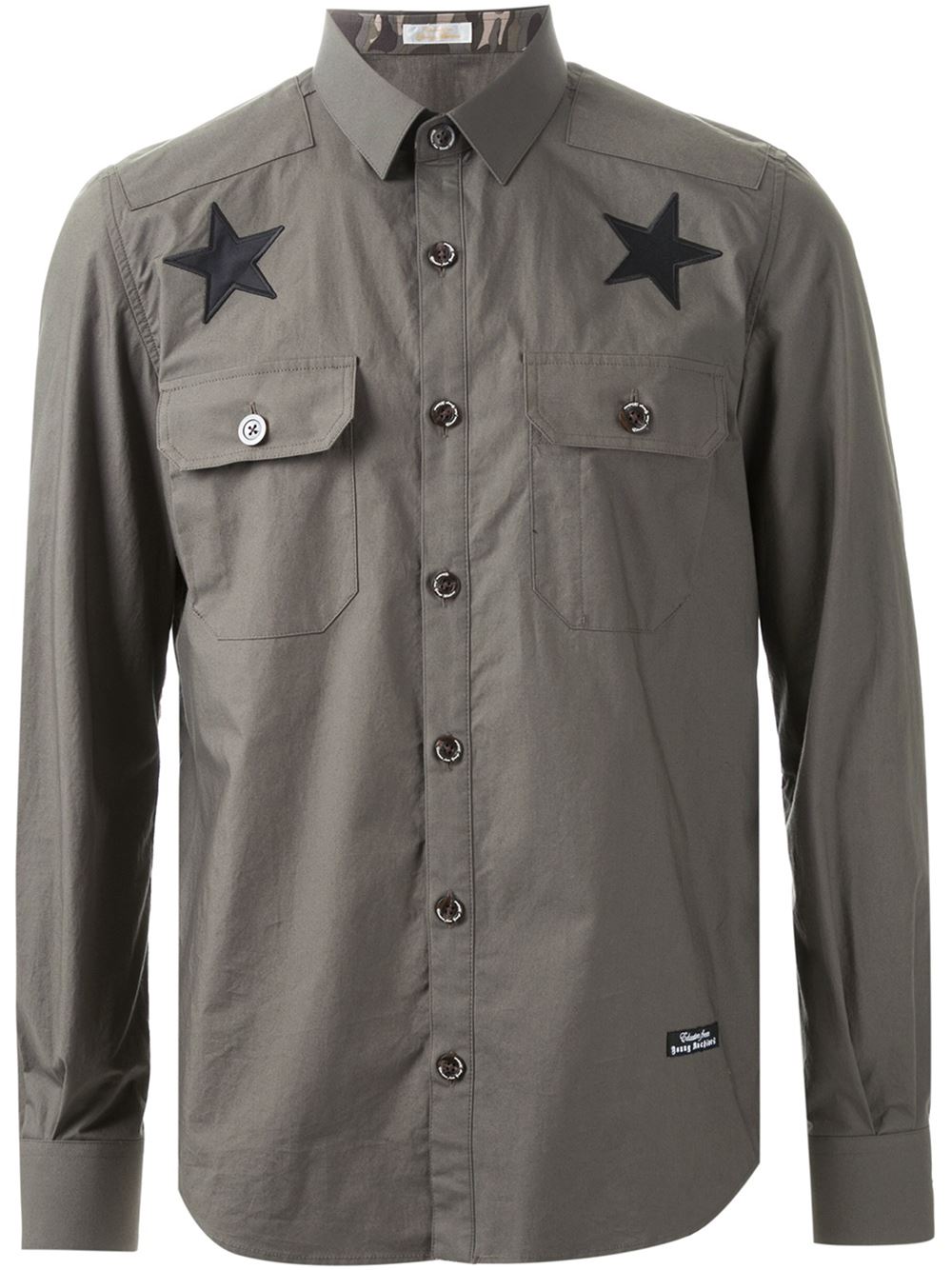 - Education from Youngmachines 军绿色 全棉 星星印花纽扣衬衫。