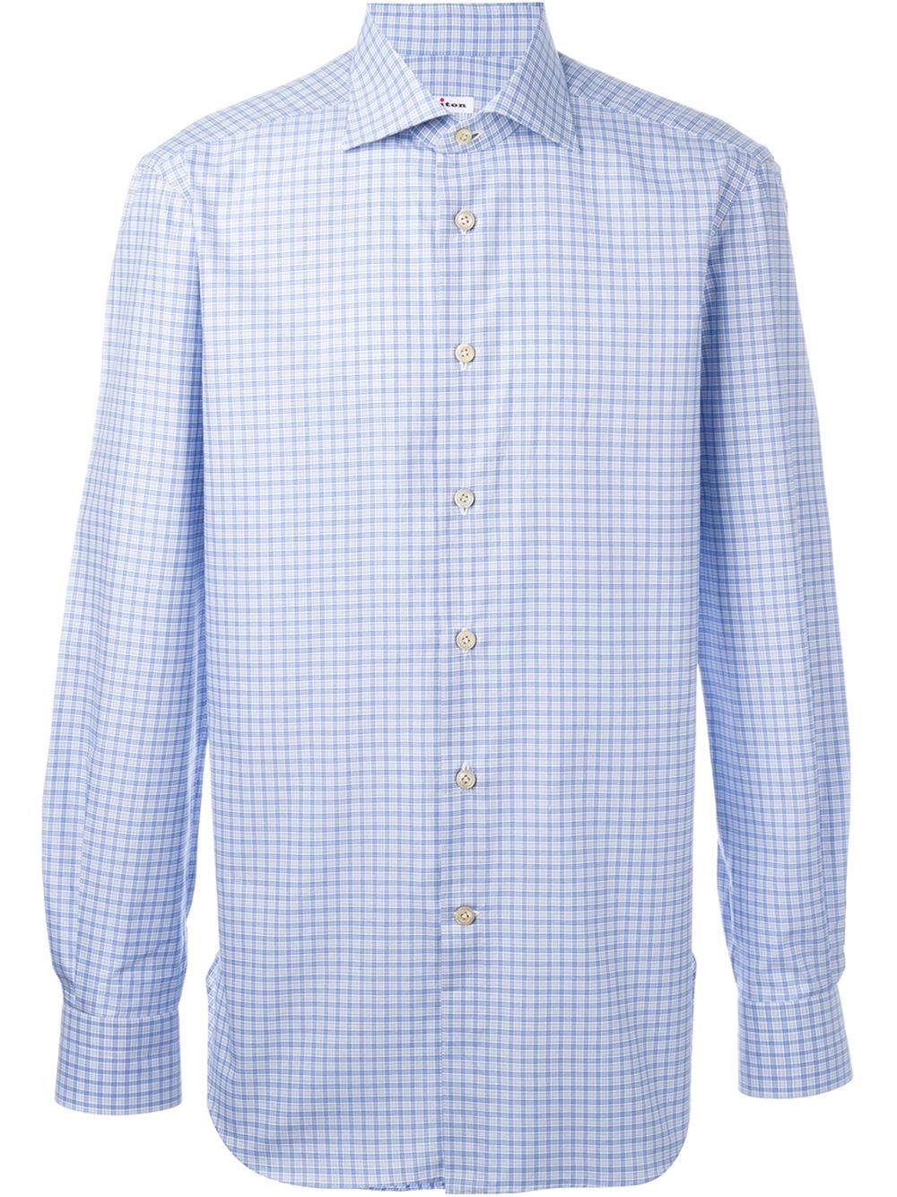 - Kiton 水蓝色 全棉 格纹衬衫。