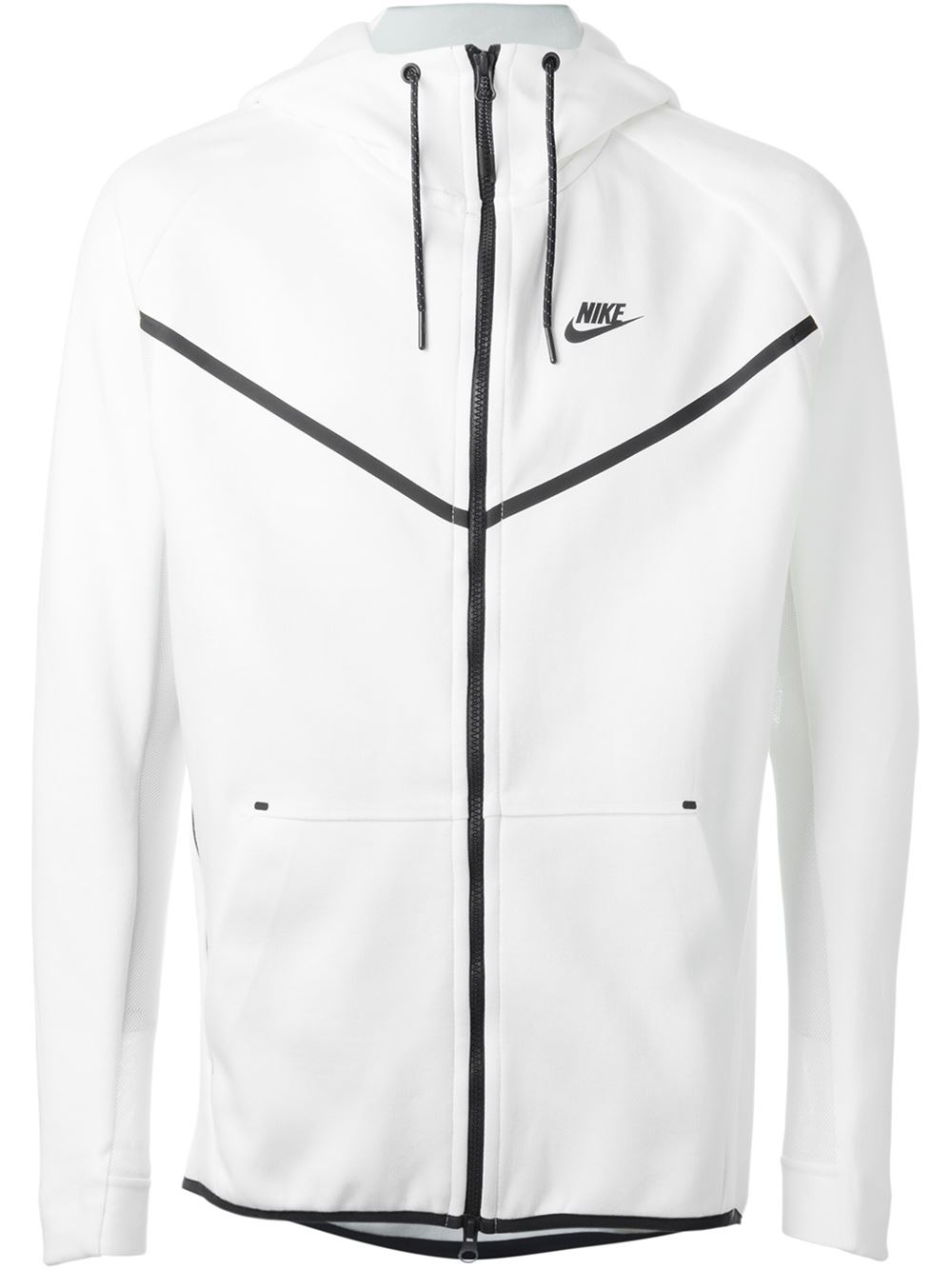 - Nike 白色 棉质混纺 拉链套帽外套。 抽绳兜帽, 正面拉链, 双向口袋, 饰有Nike标识, 长袖。