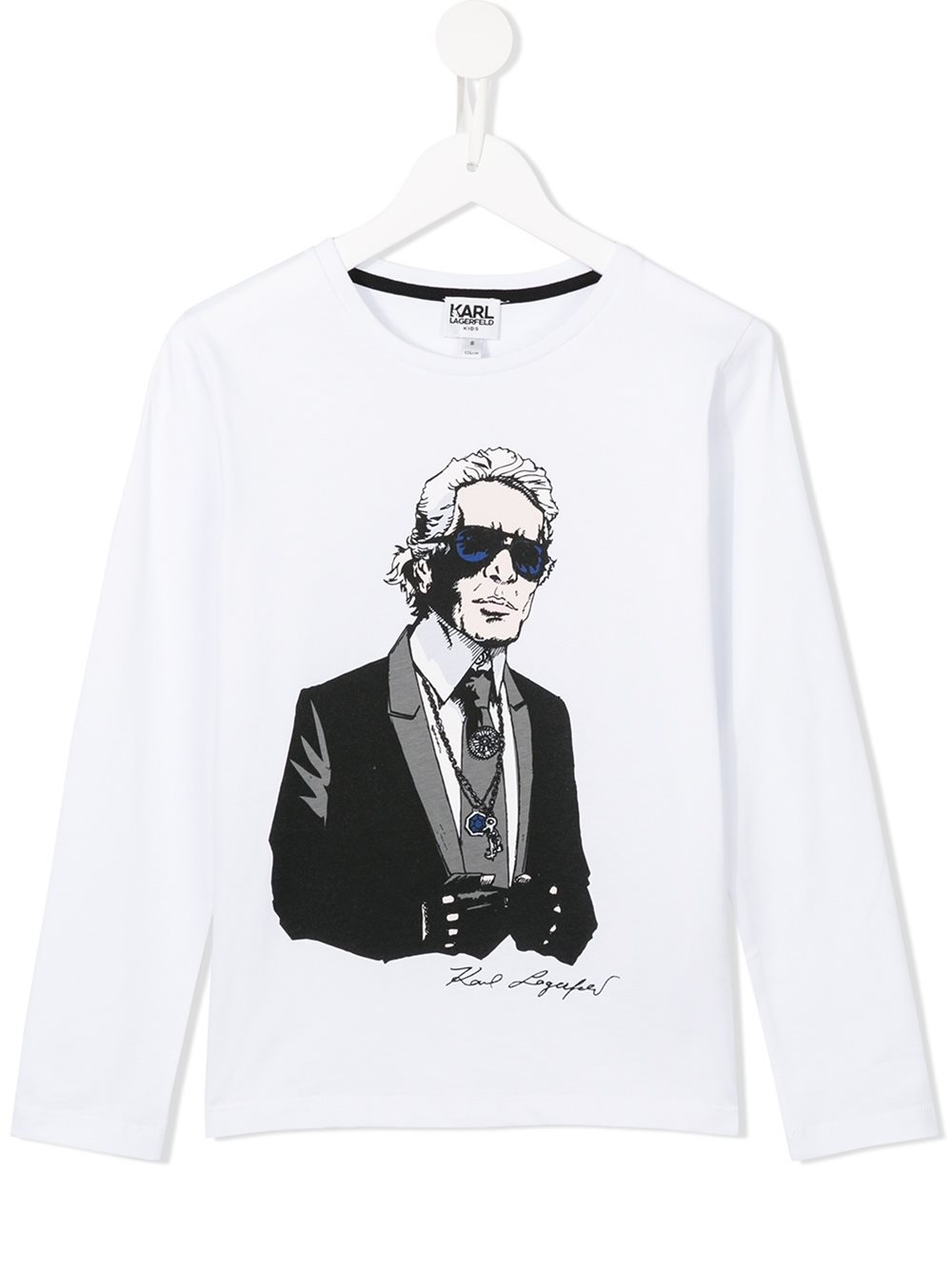 - White cotton Karl Lagerfeld print top from Karl Lagerfeld Kids featuring a round neck and long sleeves.