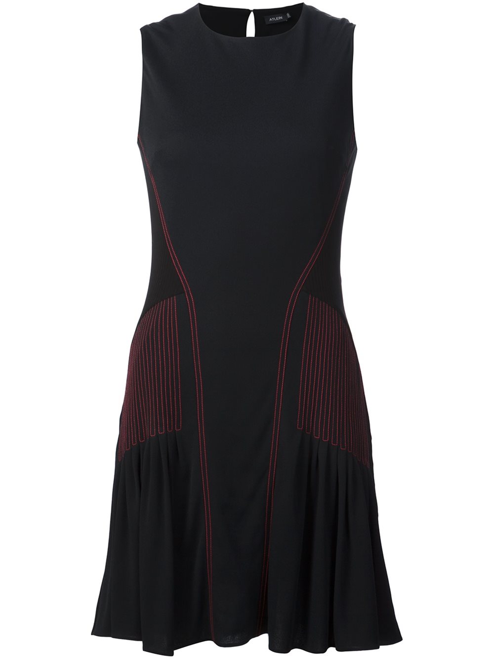 - atlein 黑色 全棉 拼色缝合荷叶连衣裙。