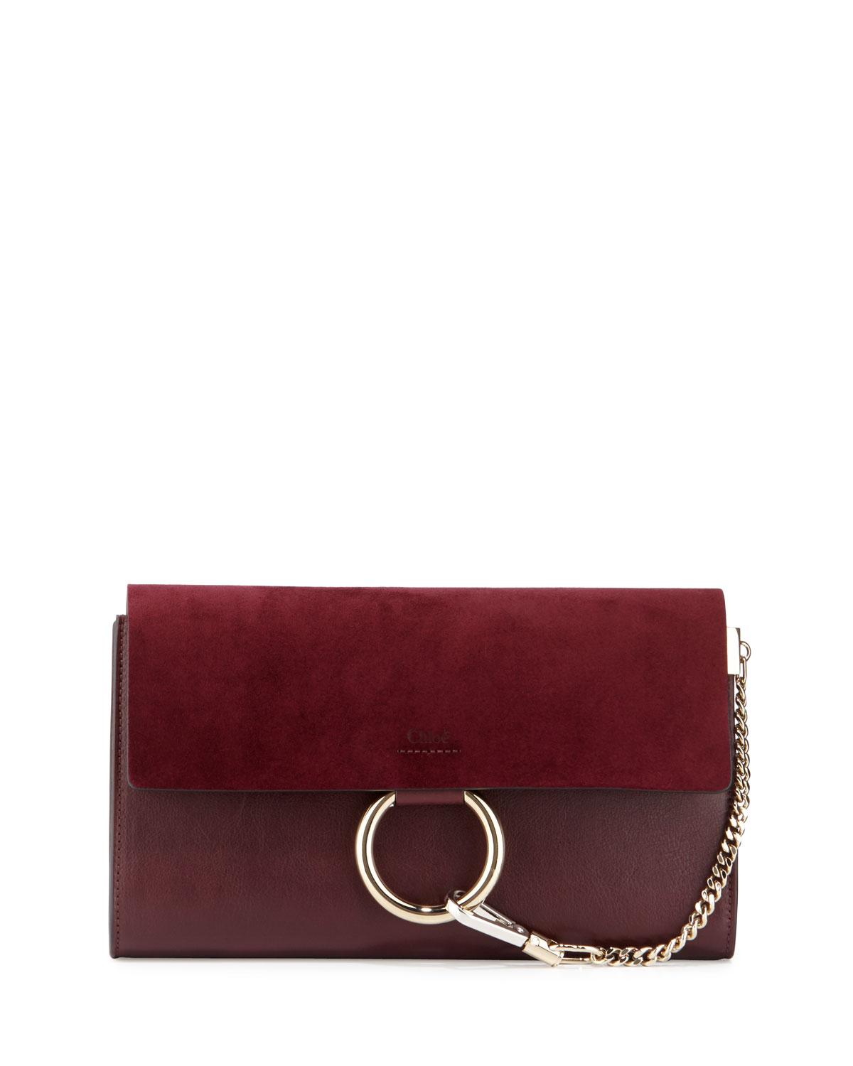 Chloé Faye Leather & Suede Clutch Bag, Dark Purple
