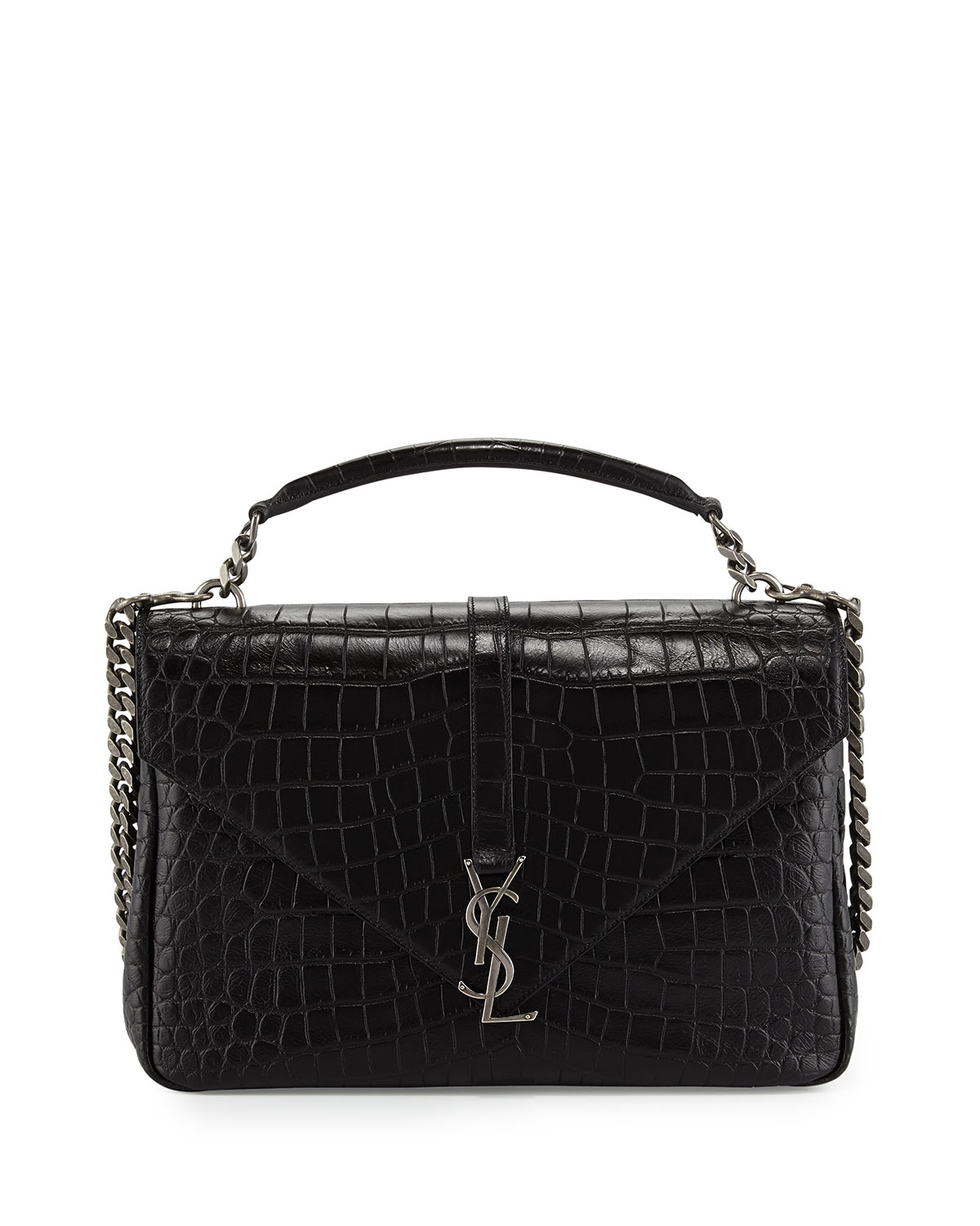 Saint Laurent Monogram College Large Crocodile-Embossed Shoulder Bag, Black