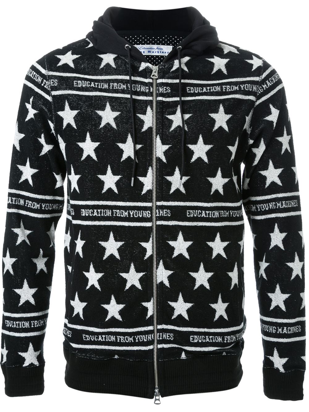 - Education from Youngmachines 黑色与白色 棉质混纺 心形图案拉链连帽衫。